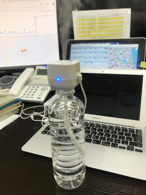 500mlのペットボトルの蓋に直接装着ができ、電源はなんとUSB電源で使用できるので、